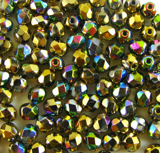 3mm Czech Fire Polish - 00030/68304 - 24k Gold Plated x 100