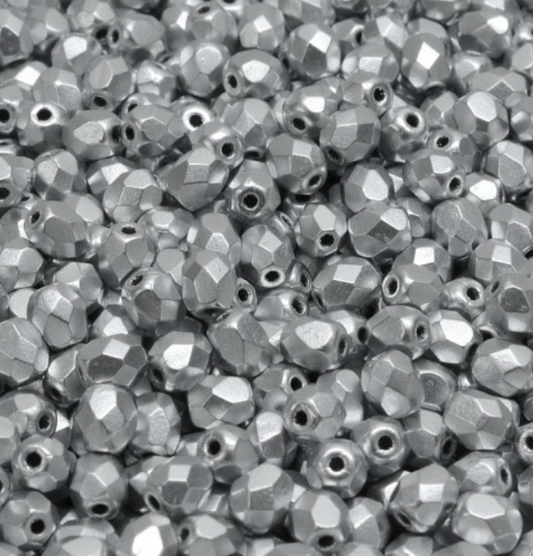 4mm Czech Fire Polish - 00030/01700 - Crystal Silver Aluminium x 100