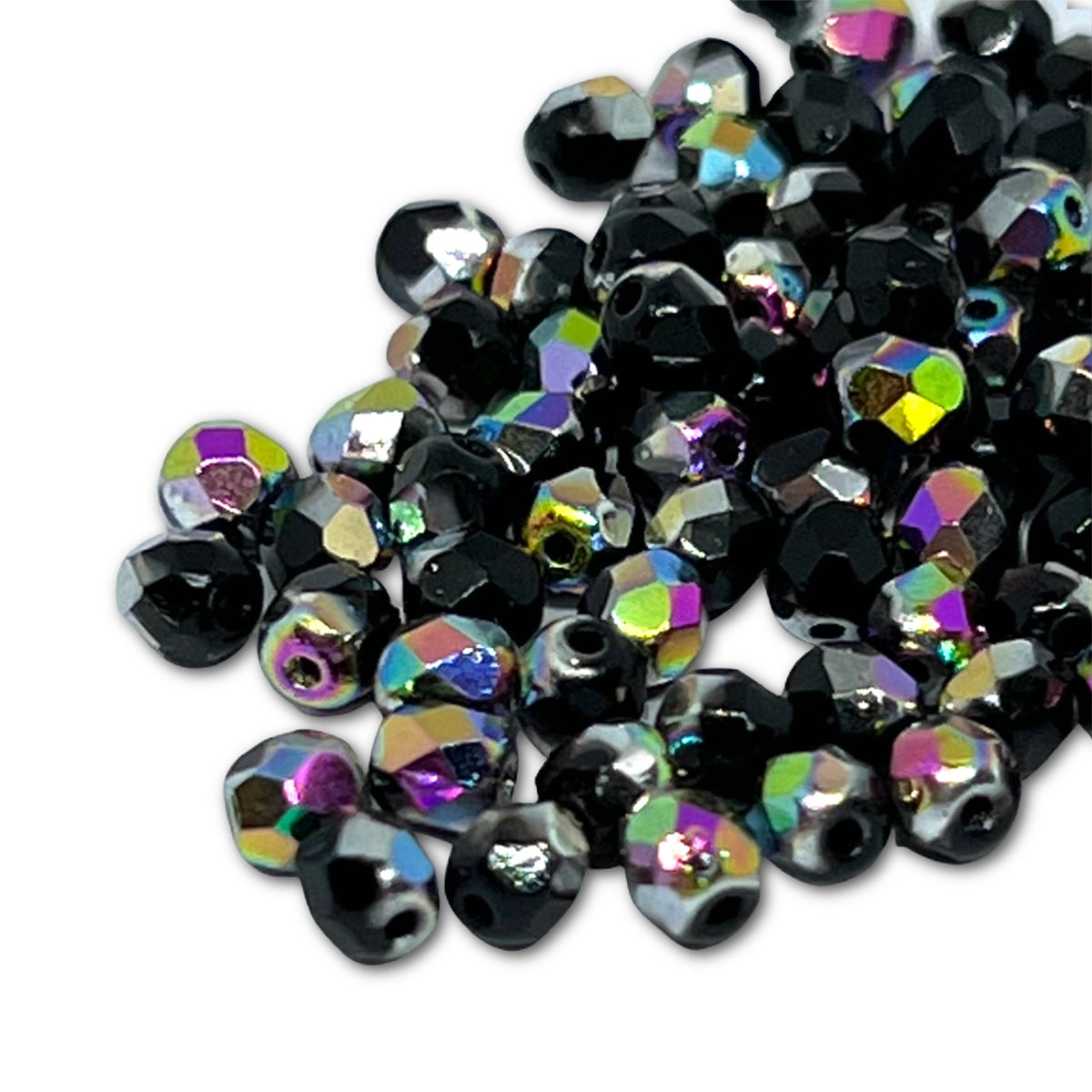 4mm Czech Fire Polish β 23980/28101 Jet Vitrail x 100