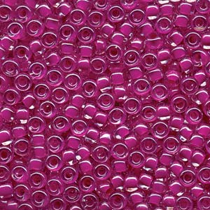 11/0 Miyuki Seed Beads/Rocailles Fuchsia lined Crystal Sold in 25g bags.