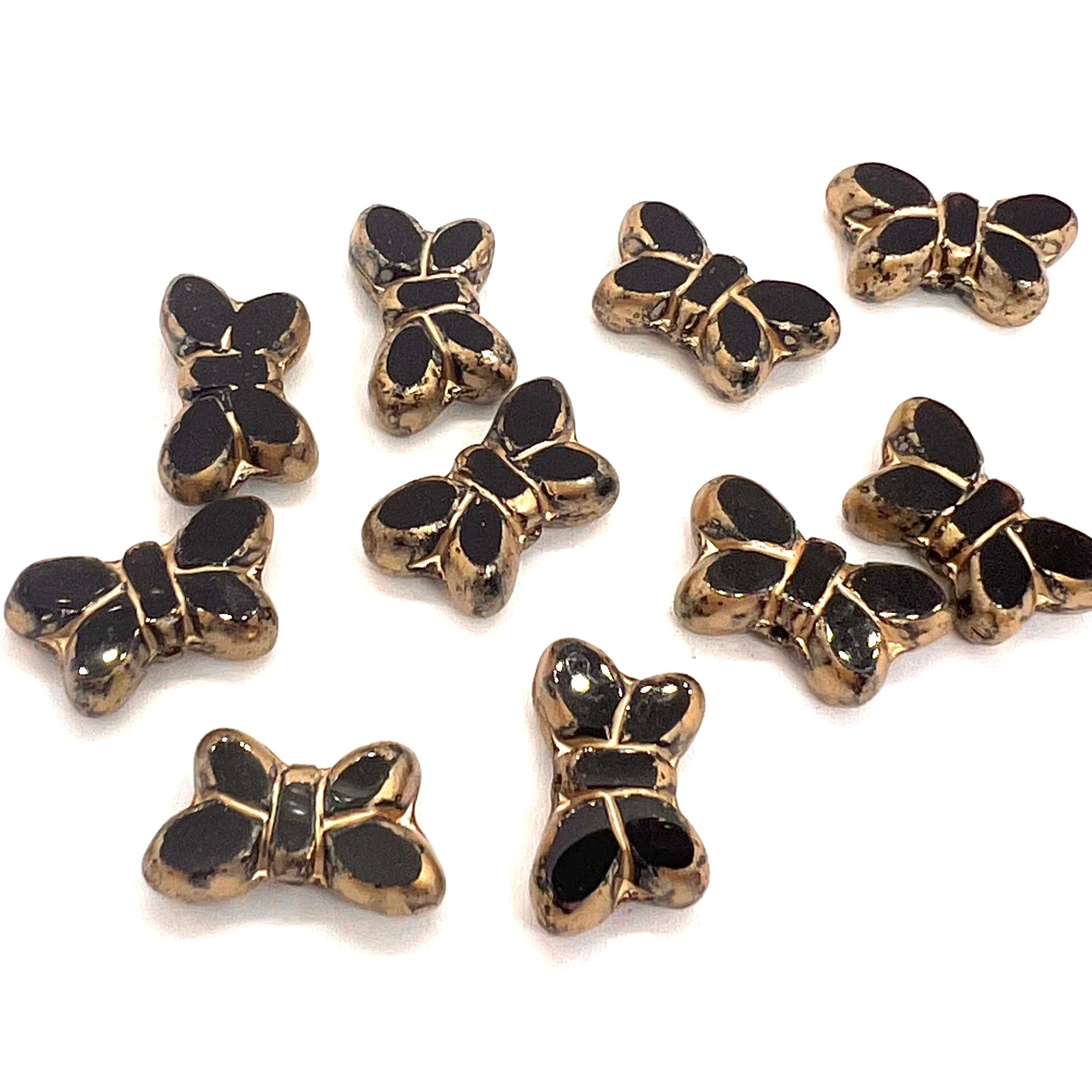 11x20mm Czech Glass Vintage Style Table Cut Butterfly Beads - Jet Picasso - Per Piece