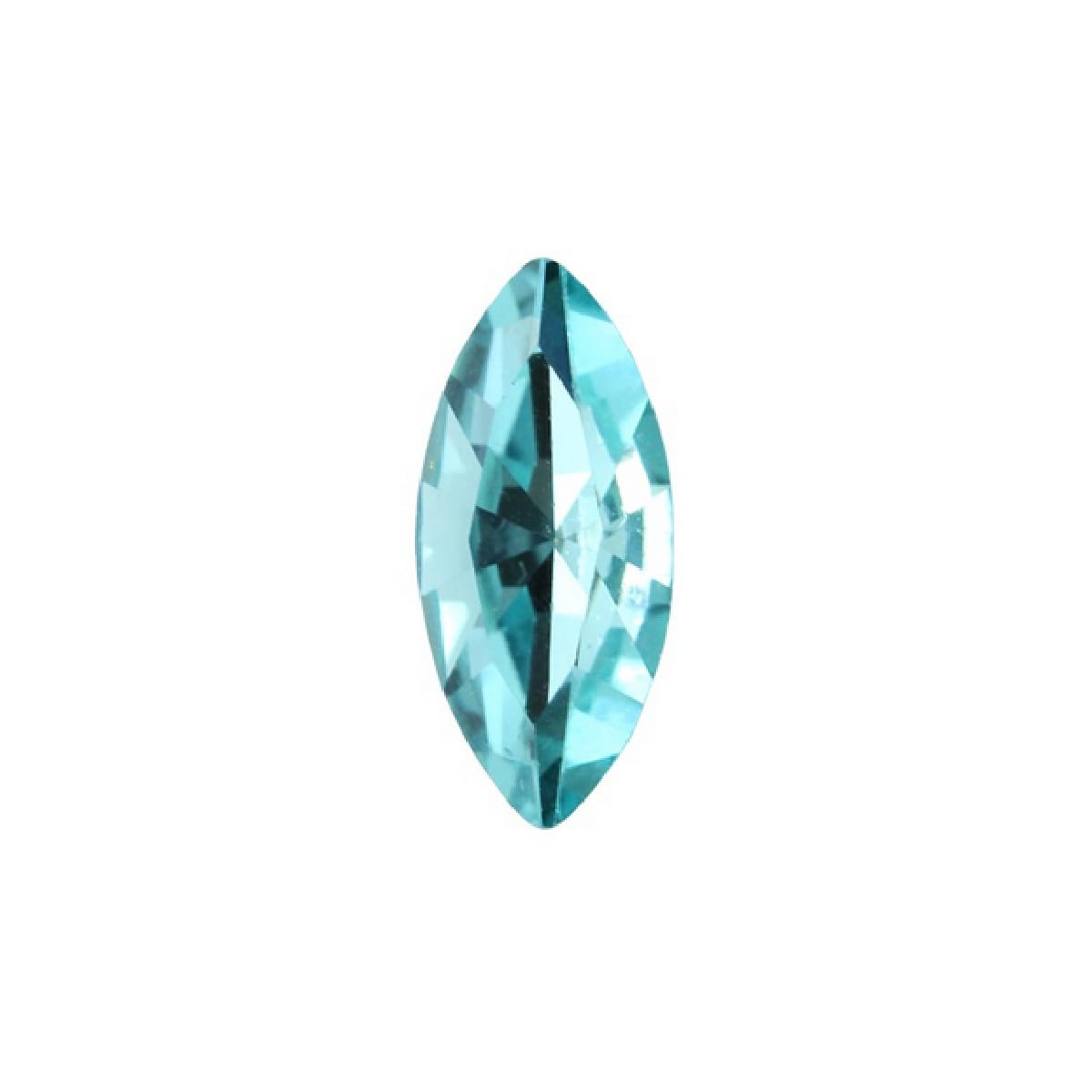 15x7mm Aurora Crystal Navette Stones Shape number A4200 Faceted and foil backed for maximum sparkle Use for bezelling with seed beads, bead embroidery, costume design and more Packed in bags of 6 Aquamarine