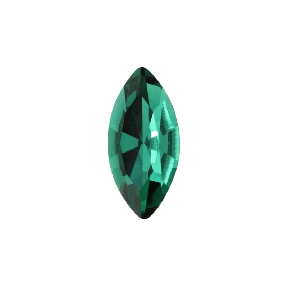 Crystal Navette Stones Faceted and foil backed for maximum sparkle Use for bezelling with seed beads, bead embroidery, costume design and more Packed in bags of 6 Emerald Green.