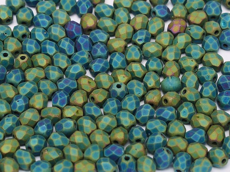 3mm Czech Fire Polish β 23980/21155 - Jet Matte Green Iris x 100