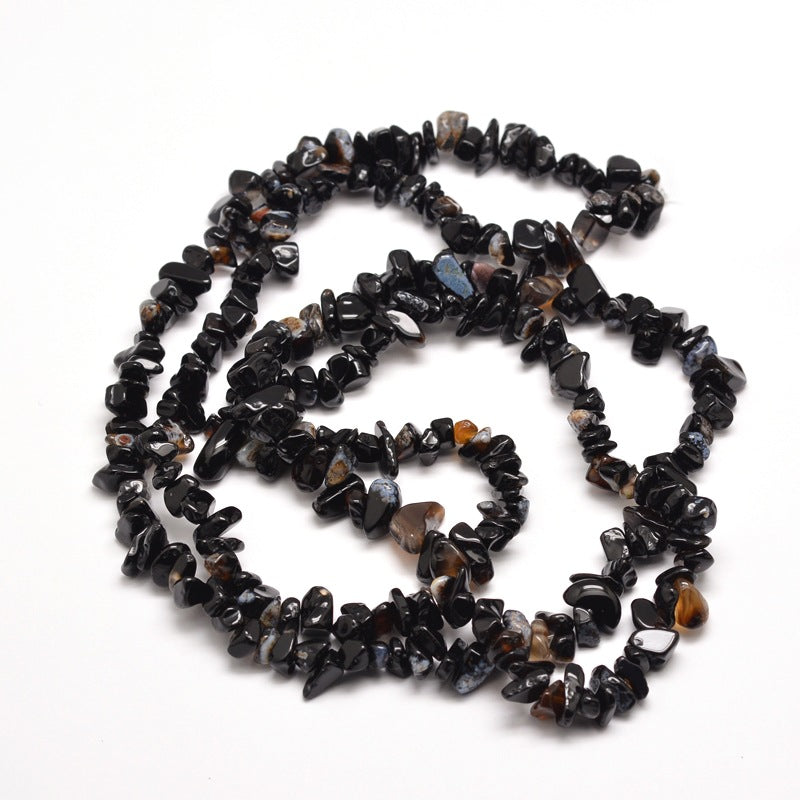 Natural Black Onyx Chip Bead Strand 1mm hole size 78cm (31 inches) long strand The gemstone black onyx is said to be a gemtsone that promotes concentration and is said to stimulate your thoughts.