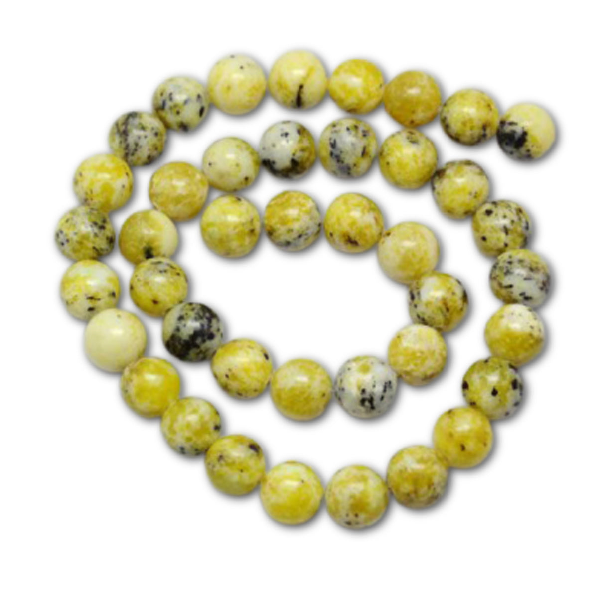 6mm Yellow Turquoise Round Bead Strand Yellow turquoise is said to rid the body of impurities as well as improvie communication and intuition.