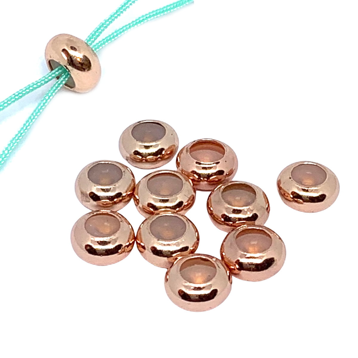 Adjustable Slider Beads – 7.5x4mm – Silicone Center – Pack of 10 – Rose Gold