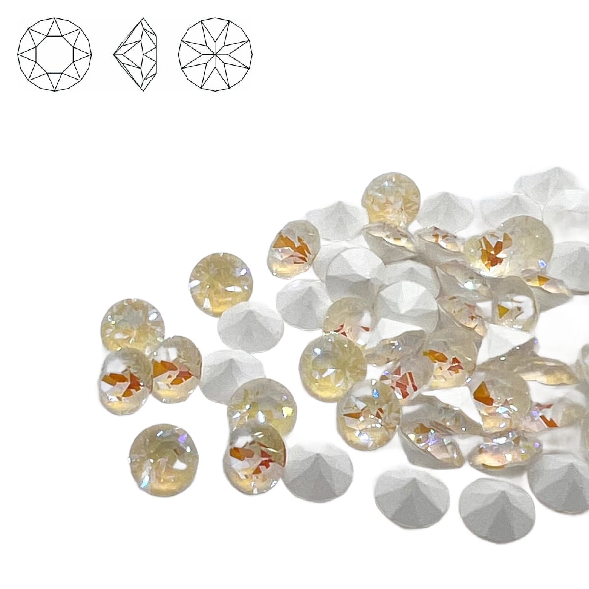 Aurora Crystal Pointy Back Chaton (C1028) SS39 Light Grey Delite Ideal for beadwork designs and use with metal clay, polymer clay and resin Crystals Measure 8.15mm Priced per pack of 2