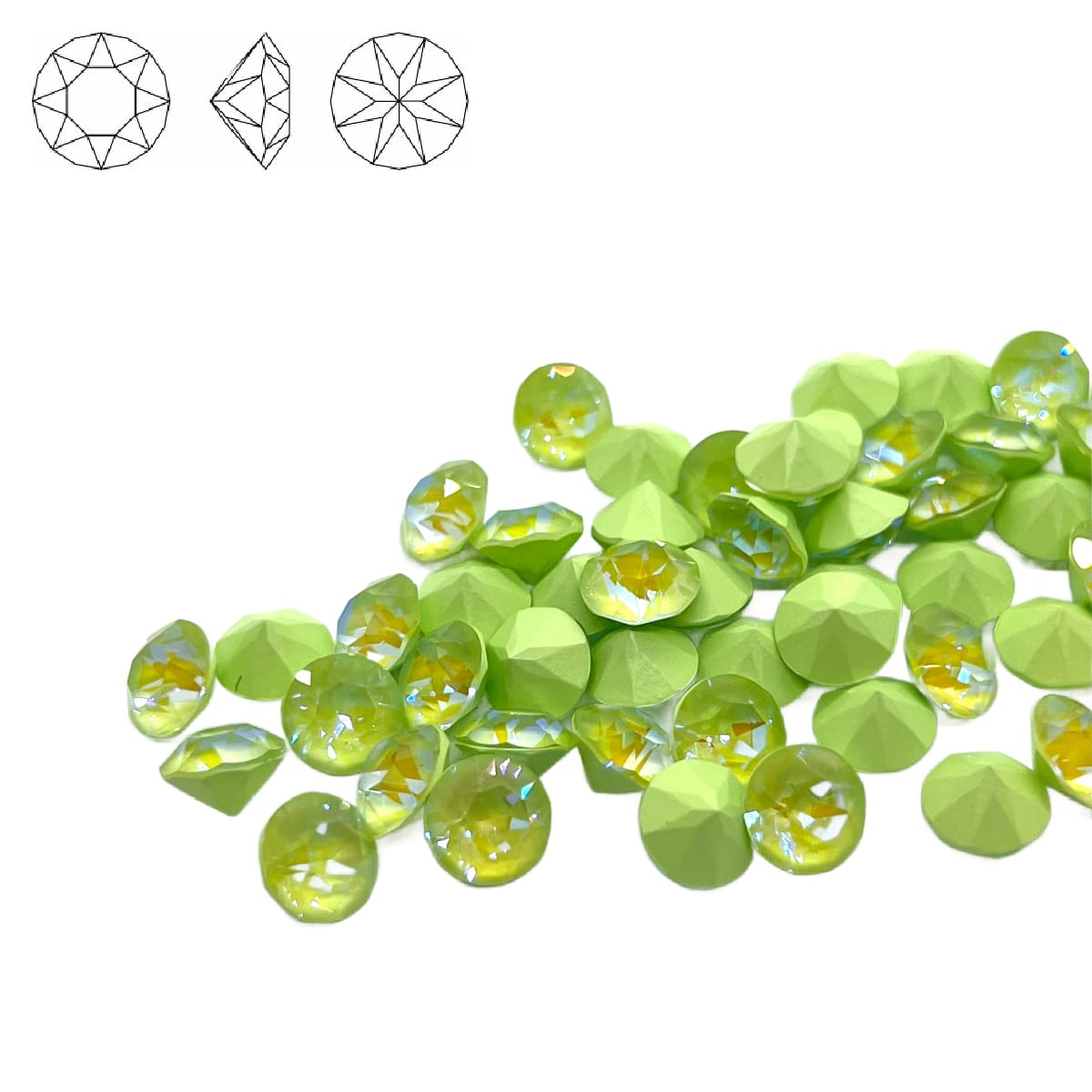Aurora Crystal Pointy Back Chaton (C1028) SS39 Mint Green Delite Ideal for beadwork designs and use with metal clay, polymer clay and resin Crystals Measure 8.15mm Priced per pack of 2