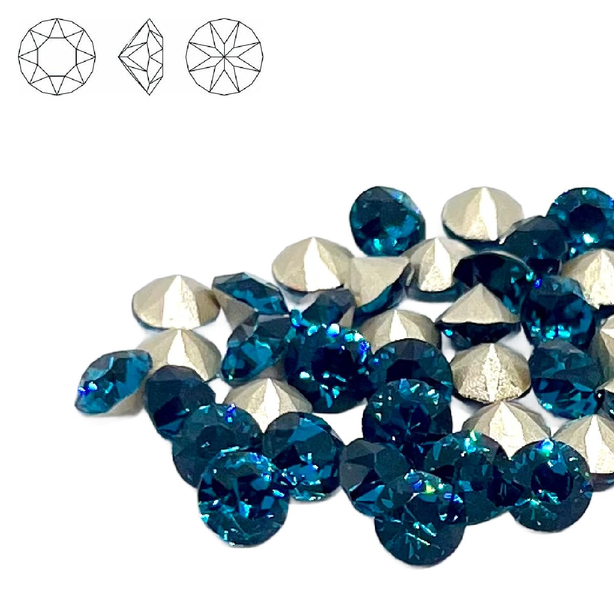 Aurora Crystal Pointy Back Chaton (C1088) SS29 Blue Zircon Foiled for extra sparkle Ideal for beadwork designs and use with metal clay, polymer clay and resin Crystals Measure 6mm Priced per pack of 2
