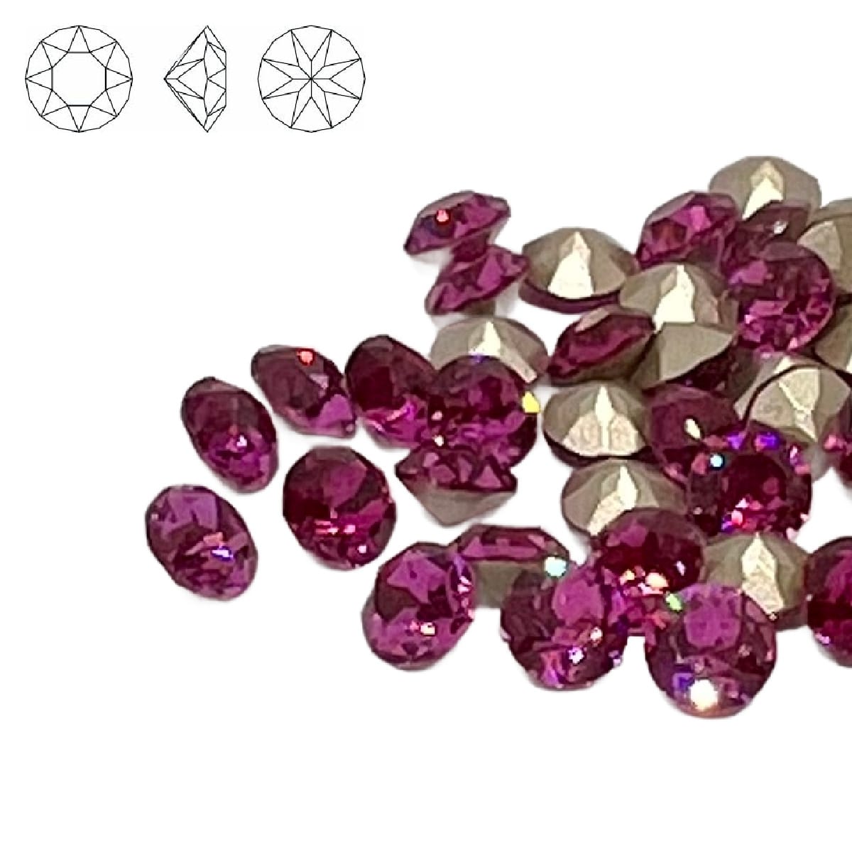 Aurora Crystal Pointy Back Chaton (C1088) SS29 Fuchsia Foiled for extra sparkle Ideal for beadwork designs and use with metal clay, polymer clay and resin Crystals Measure 6mm Priced per pack of 2