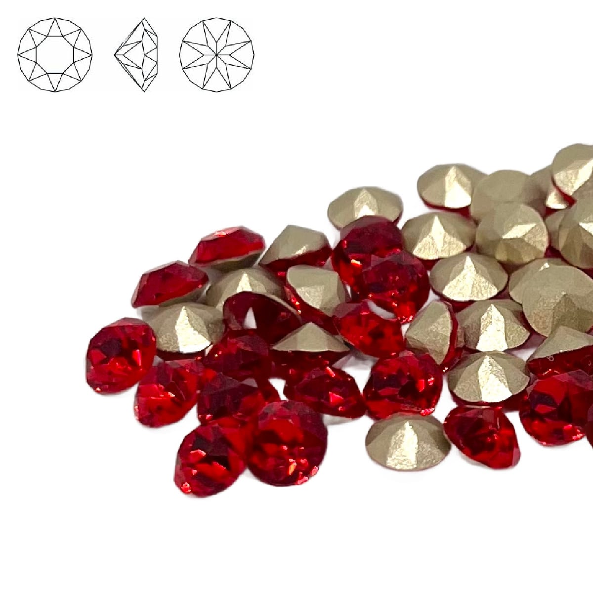 Aurora Crystal Pointy Back Chaton (C1088) SS29 Light Siam Foiled for extra sparkle Ideal for beadwork designs and use with metal clay, polymer clay and resin Crystals Measure 6mm.