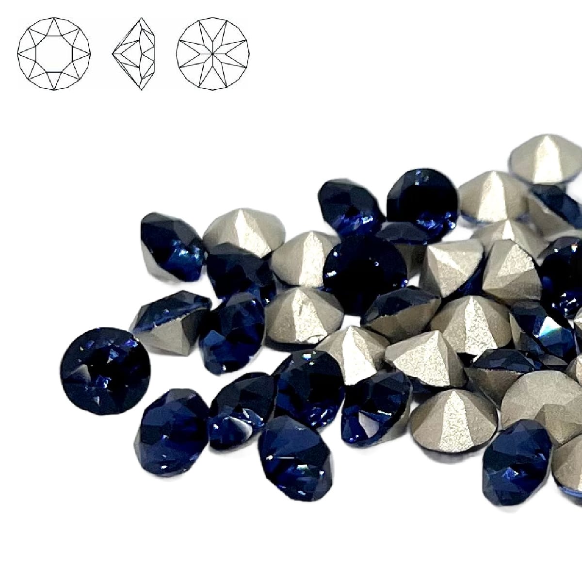 Aurora Crystal Pointy Back Chaton (C1088) SS29 Montana Blue Foiled for extra sparkle Ideal for beadwork designs and use with metal clay, polymer clay and resin Crystals Measure 6mm.
