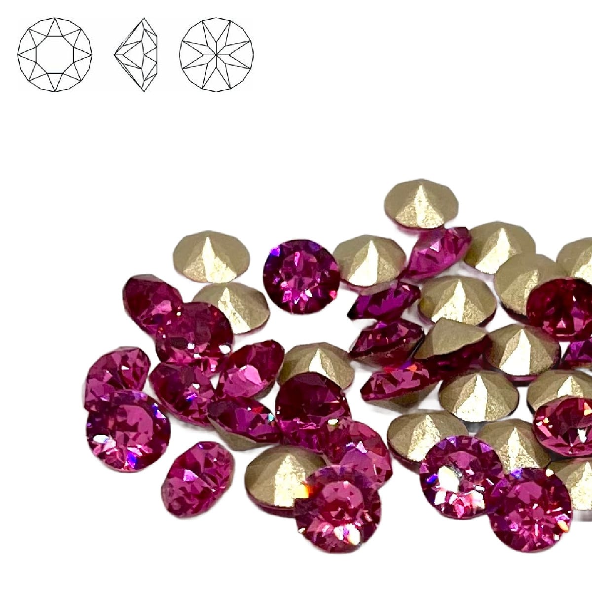 Aurora Crystal Pointy Back Chaton (C1088) SS29 Rose Foiled for extra sparkle Ideal for beadwork designs and use with metal clay, polymer clay and resin Crystals Measure 6mm Priced per pack of 2