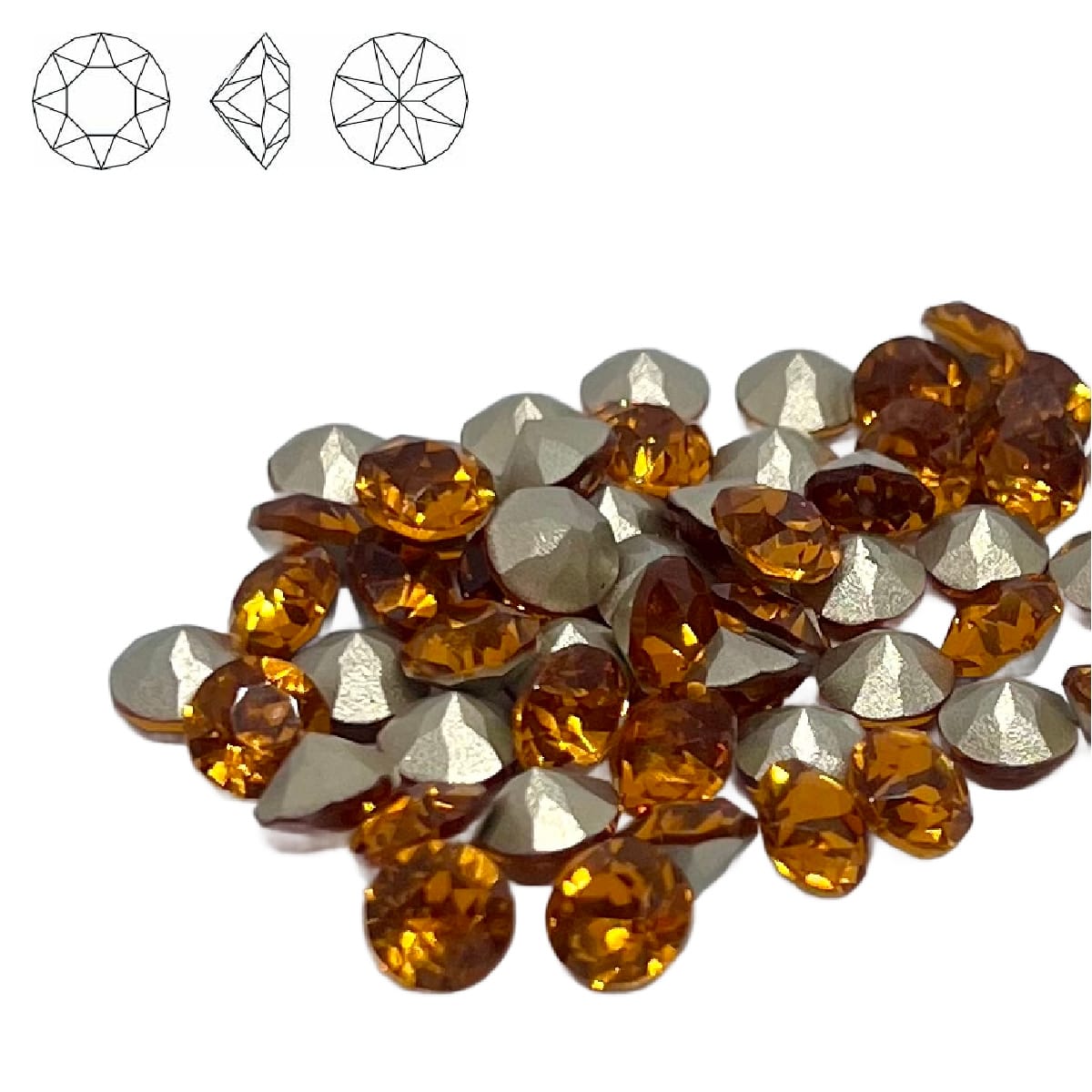 Aurora Crystal Pointy Back Chaton (C1088) SS29 Topaz Foiled for extra sparkle Ideal for beadwork designs and use with metal clay, polymer clay and resin Crystals Measure 6mm.