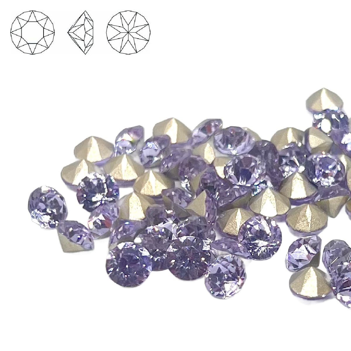 Aurora Crystal Pointy Back Chaton (C1088) SS29 Violet Foiled for extra sparkle Ideal for beadwork designs and use with metal clay, polymer clay and resin Crystals Measure 6mm Priced per pack of 2
