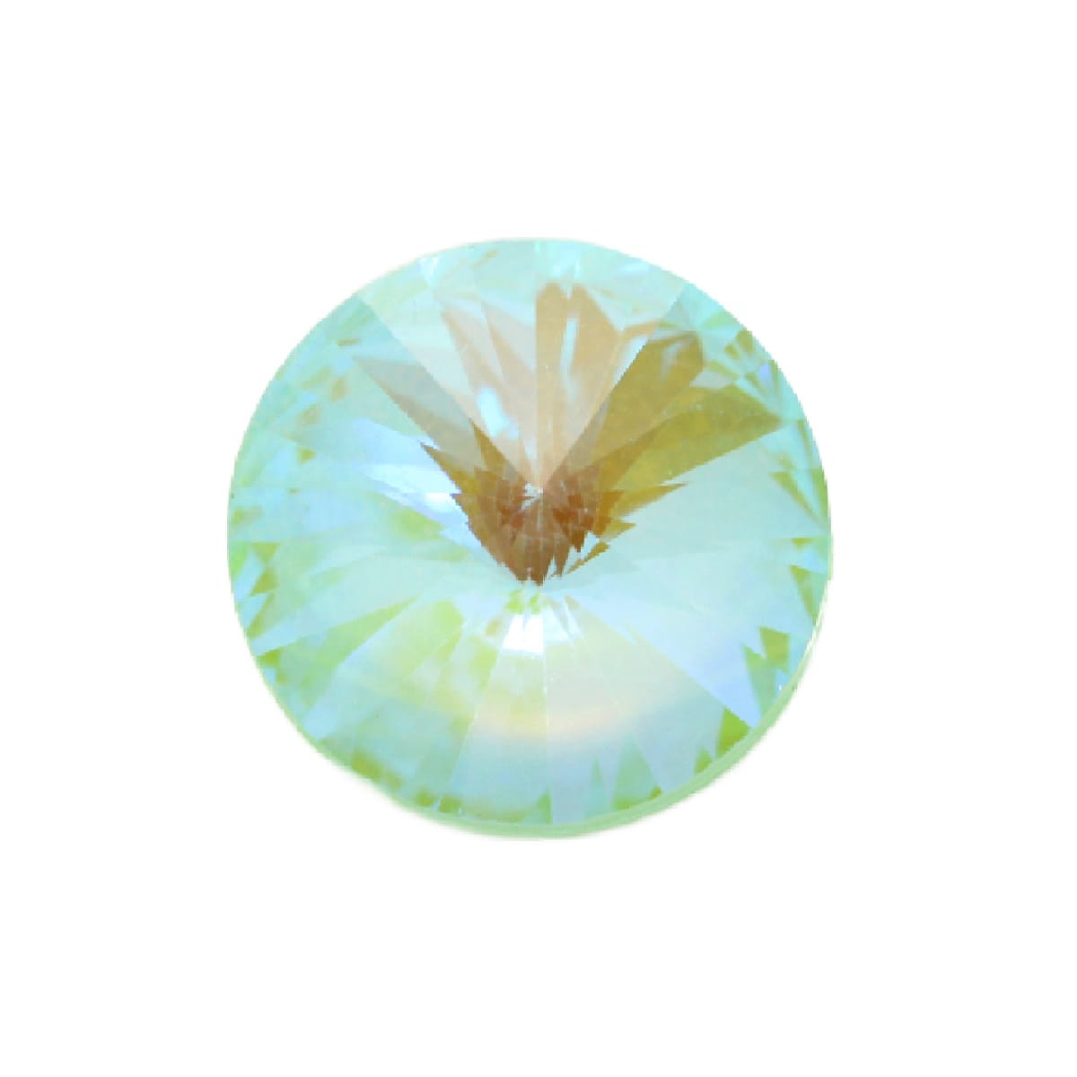 12mm Aurora Crystal Rivoli Mint Green Delite Priced Per Piece Aurora Crystals are high quality crystalls manufactured in China for the jewellery trade, they offer incredible sparkle and colour consistency for the price and are very similar to Swarovski 1122 rivoli stones - perfect for bezelling and incorporating into all beadwork designs that would previously have used a Swarovski stone.