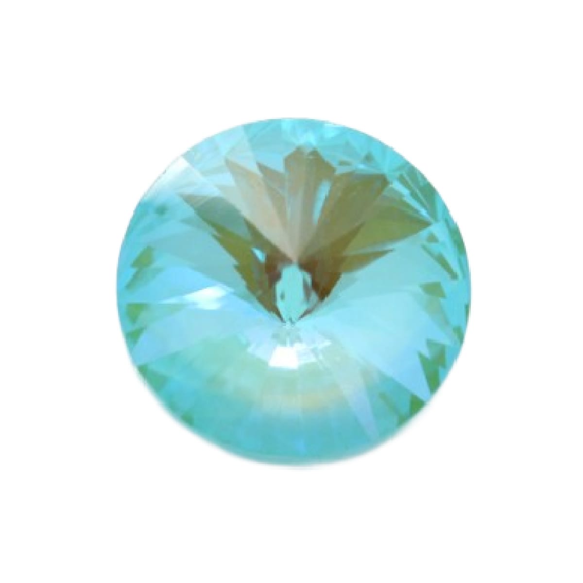 12mm Aurora Crystal Rivoli Summer Blue Delite Priced Per Piece Aurora Crystals are high quality crystalls manufactured in China for the jewellery trade, they offer incredible sparkle and colour consistency for the price and are very similar to Swarovski 1122 rivoli stones - perfect for bezelling and incorporating into all beadwork designs that would previously have used a Swarovski stone.