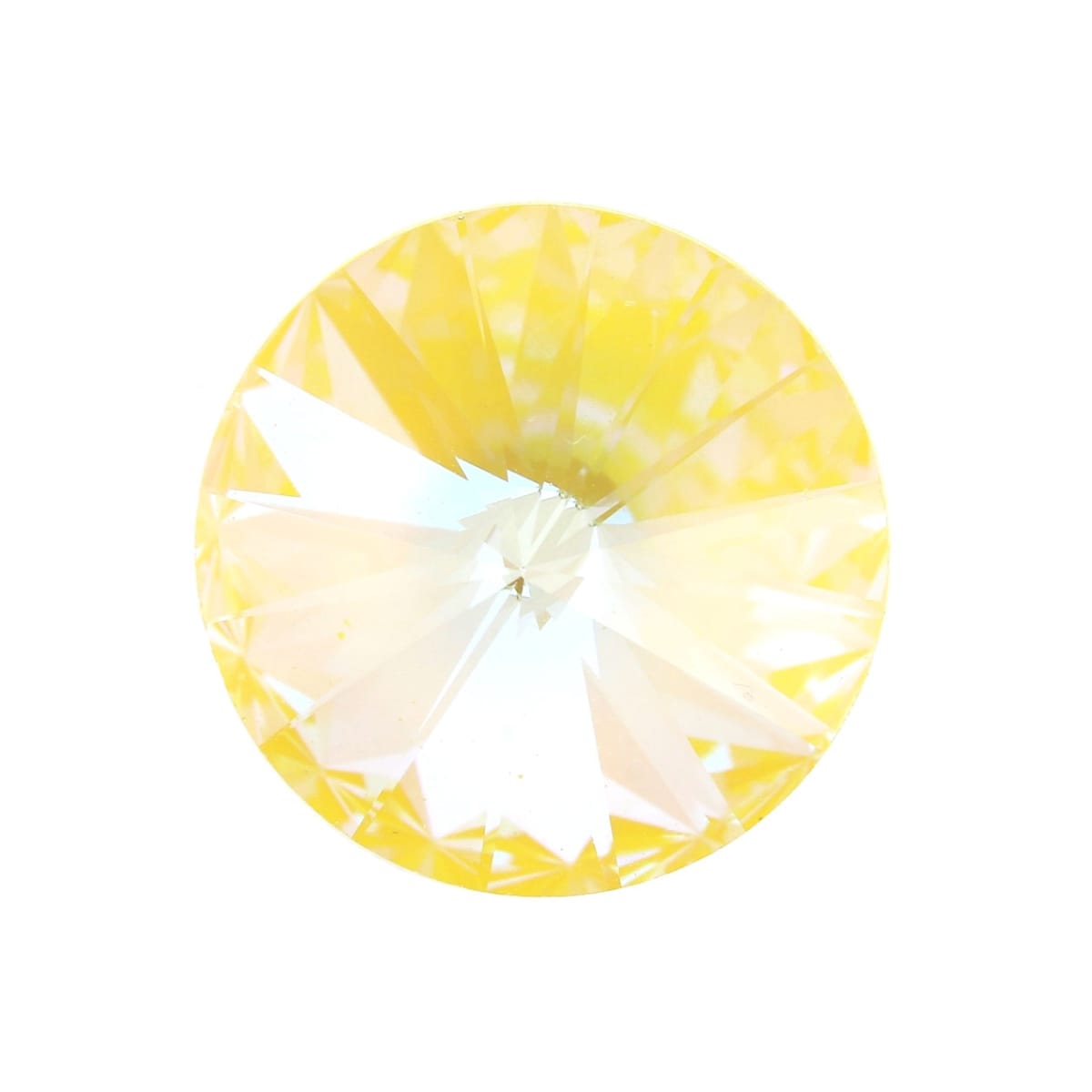 12mm Aurora Crystal Rivoli Sunshine Delite Priced Per Piece Aurora Crystals are high quality crystalls manufactured in China for the jewellery trade, they offer incredible sparkle and colour consistency for the price and are very similar to Swarovski 1122 rivoli stones - perfect for bezelling and incorporating into all beadwork designs that would previously have used a Swarovski stone.