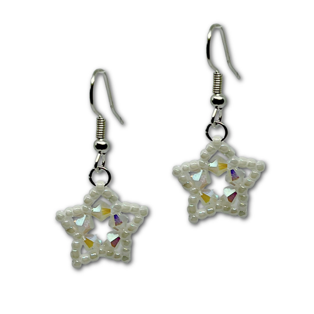 Crystal Star Earring Kit Includes full instructions Preciosa Crystal beads & Toho Seed Beads Silver Plated earwires Suitable for beginners Requires beading thread (Wildfire, Fireline or DuraThread) and size 10 beading needle