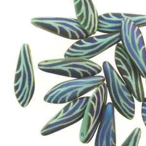 Czech Glass Dagger Beads Green Turquoise Matte Wing 5x16mm Hole size 0.8mm Priced per stand of 25 beads Great for beadwork, kumihimo braiding and more
