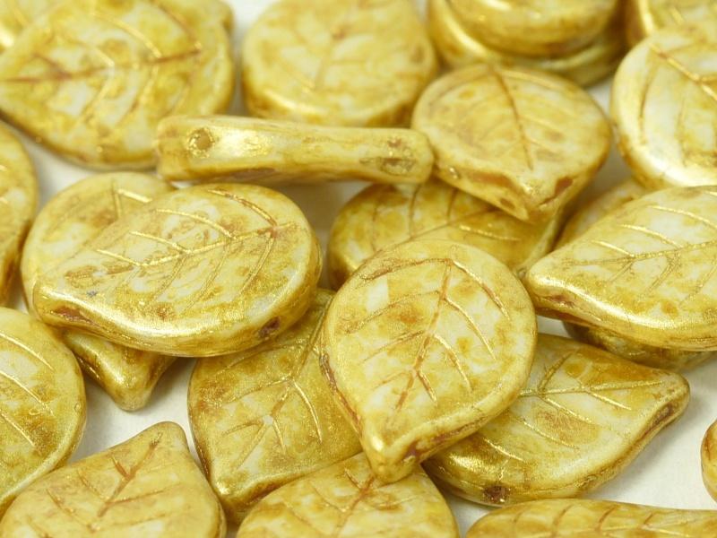 Czech Glass Side Drilled Leaf Beads These leaf beads are drilled sideways with the hole running horizontally across the top of the leaf meaning that they will hang correctly when strung onto a necklace. 13x18mm Pack of 5 Chalk Sand Picasso Handmade Czech Glass