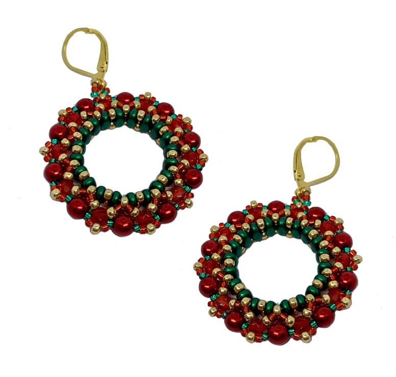 Colour instructions and all the beads and findings needed to create these holiday earrings Gold Plated Earwires Czech and Japanese Glass beads Suitable for beginners Additionally you will need Fireline Thread and a size 10 Beading Needle.