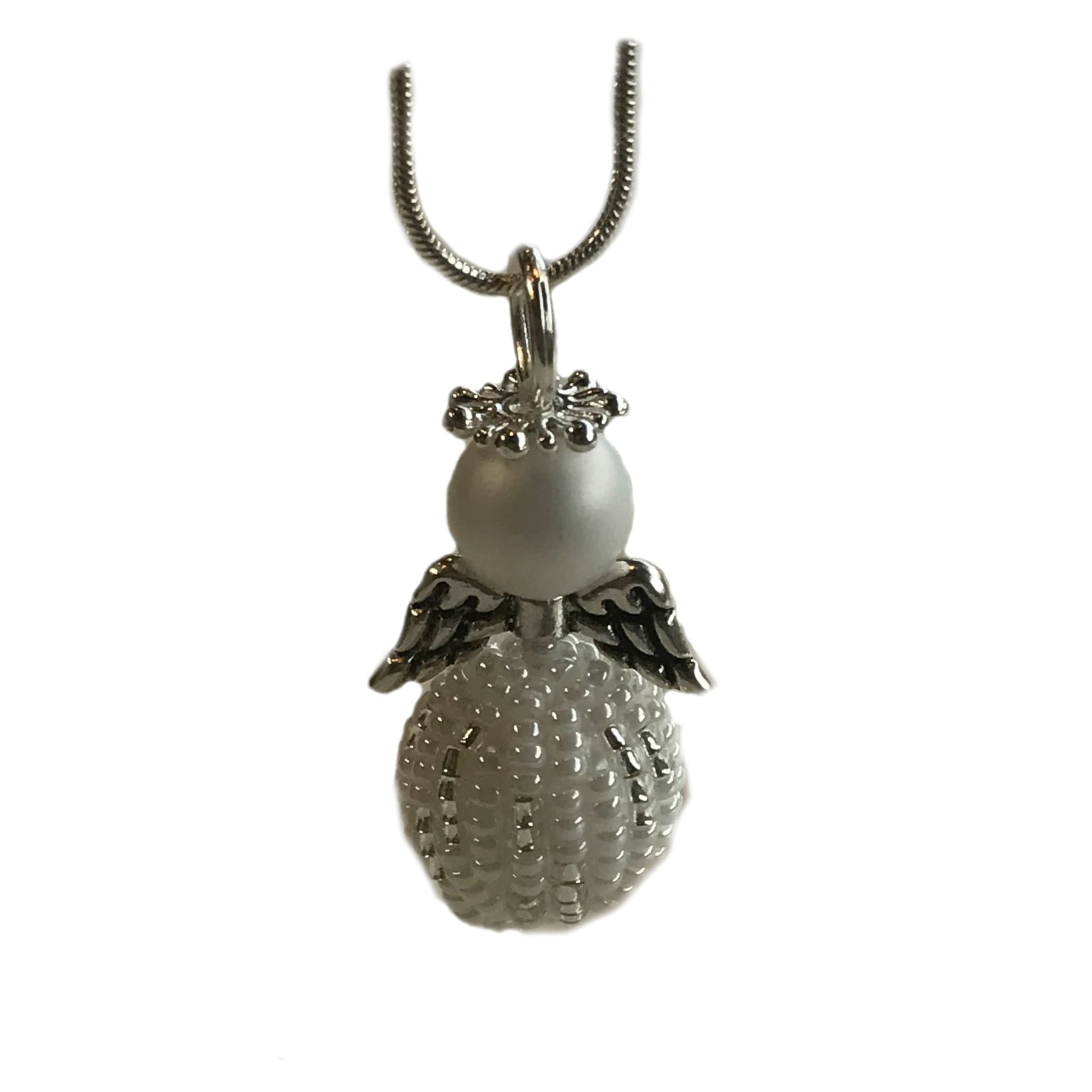 Harmony Angel Necklace Silver Plated Findings, Preciosa and Miyuki Beads Includes silver plated chain Makes 1 Additional items required: Beading thread, size 10 beading needle.