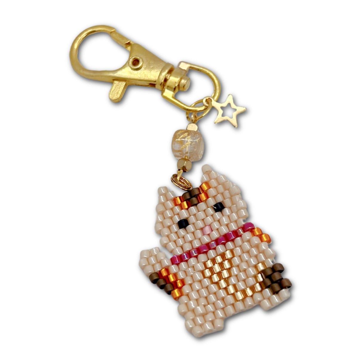 Cute Maneki Neko Lucky Cat Brick Stitch Charm Kit Kit contains 18k Gold Plated Star Charm, Miiyuki delica beads and all the findings needed to bead your cat charm Brick stitch.