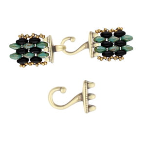 Cymbals are unique findings designed to work perfectly with SuperDuo beads Mesaria 3 SuperDuo Hook Antique Brass Plated Great for finishing beaded pieces Neatly fits Superduo beads.
