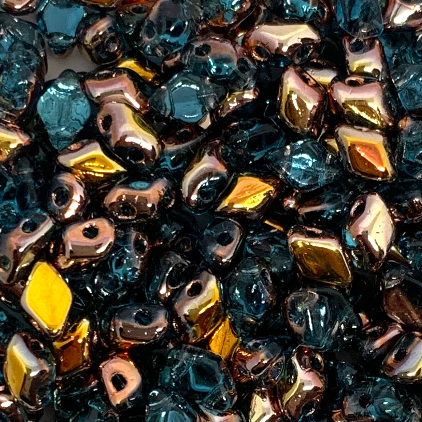 6x4mm Mini Gemduo Teeny tiny sized gemduo (diamonduo) beads Pack of 5g - approx 70 beads Made by Matubo in the Czech Republic Aquamarine Capri Gold