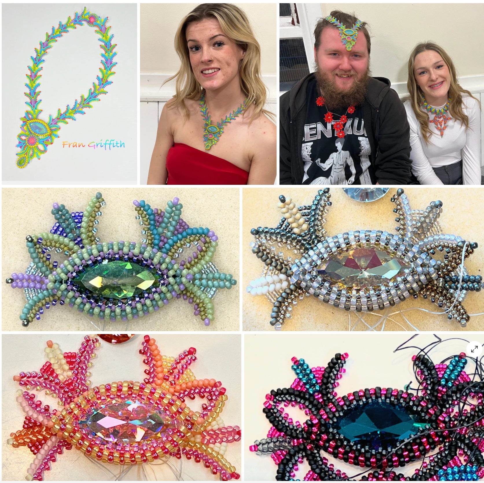 Supplies for your classes: bead mat, thread, beading needles, glasses/magnifier, and the items on your materials list (we’ll email you a list of requirements when you book your place and also information on how to purchase a kit from Fran directly).