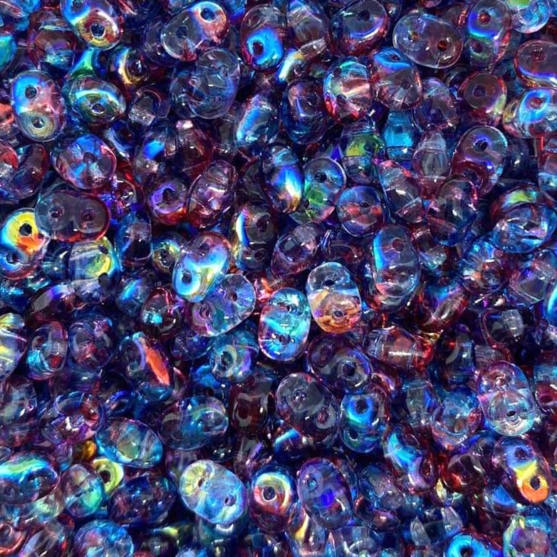 Superduo Beads 2.5x5mm Twin holed oval beads Priced per 25 gram bag - approx 300 beads Made in the Czech Republic Summer Rainbow Light Blue