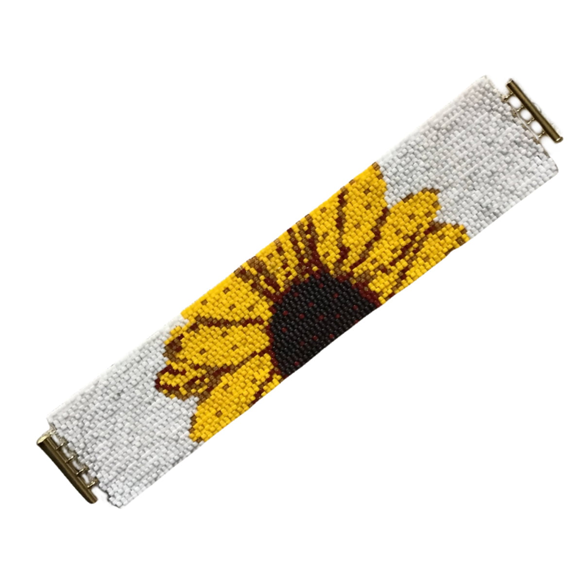 Two drop peyote sunflower bracelet kit by Holly Kurzman Includes full colour pattern, Miyuki Delica beads and gold plated clasp Suitable for beginners In addition you will need a size 12 beading needle and beading thread such as Fireline