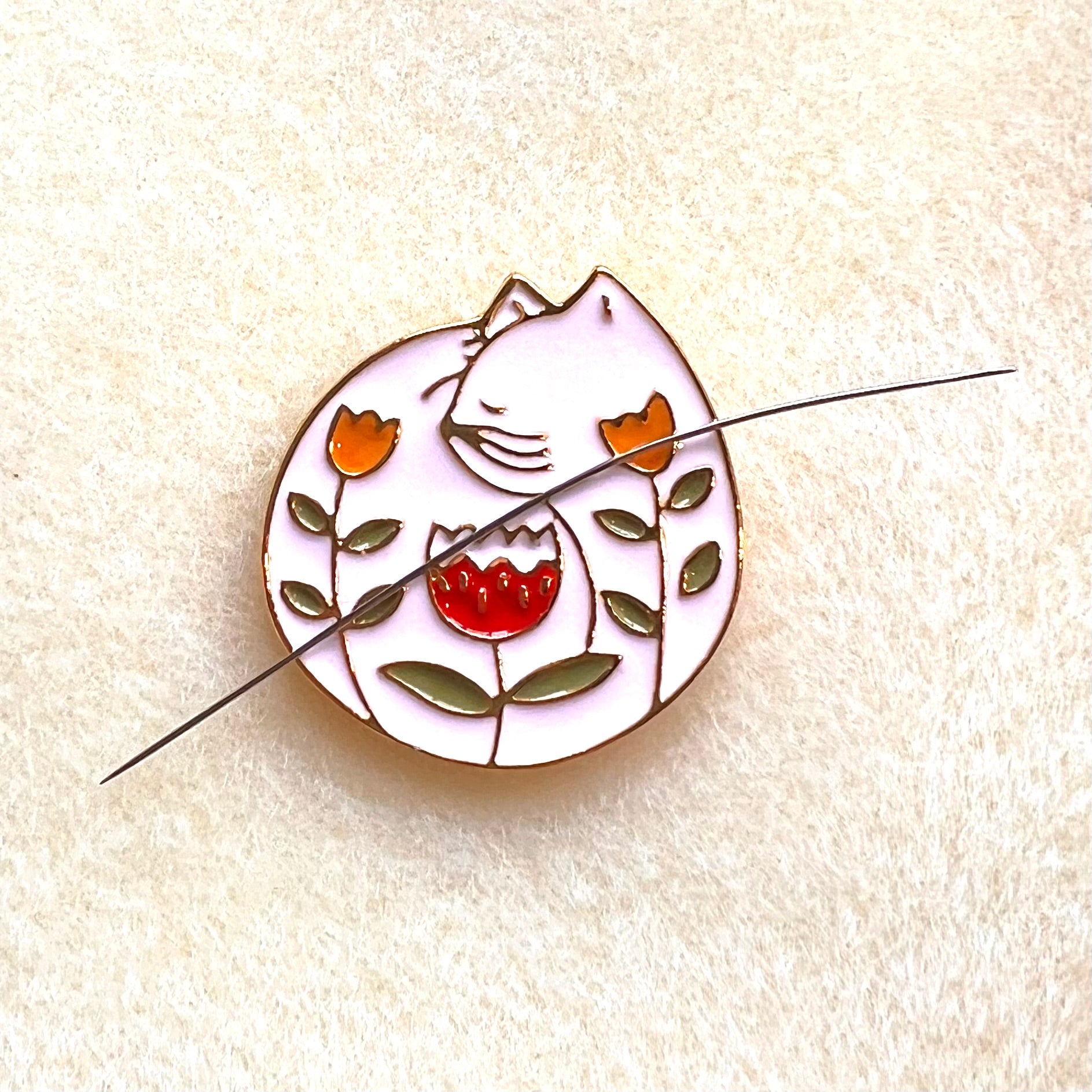 Featuring a delightful enamel cat design, it uses powerful magnets to grip securely onto your beading mat—no more hunting for lost needles mid-project.
